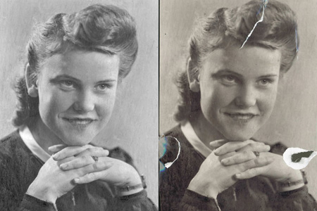 Naprawa starych fotografii to proces renowacji, który pomoże przywrócić zniszczonym zdjęciom ich dawny "blask" poprzez odnowienie oraz retusz. Dzięki zaawansowanemu oprogramowaniu komputerowemu oraz wyjątkowej klasy skanerze wysokiej rozdzielczości firmy EPSON usuniemy z uszkodzonych zdjęć przedarcia, plamy lub nawet odtworzymy całe brakujące fragmenty fotografii, a także zdefiniujemy na nowo paletę barw oraz ustawimy jasność i kontrast. Dodatkowym naszym atutem jest wieloletnie doświadczenie oraz ciągłe doskonalenie umiejętności w tej dziedzinie.